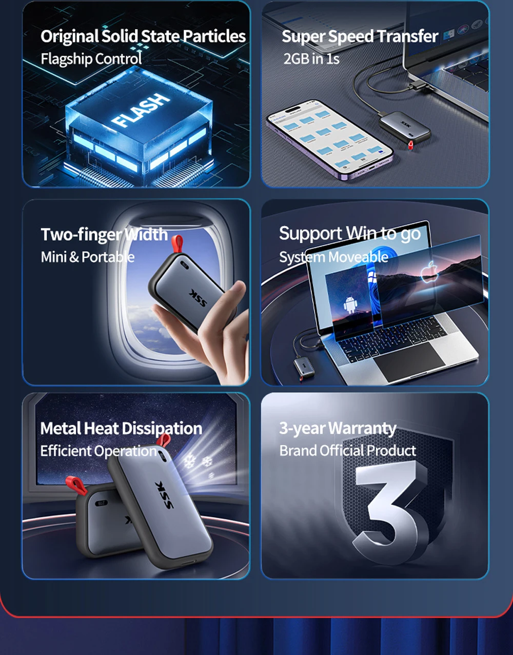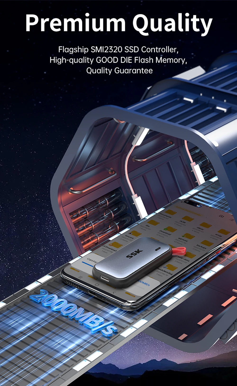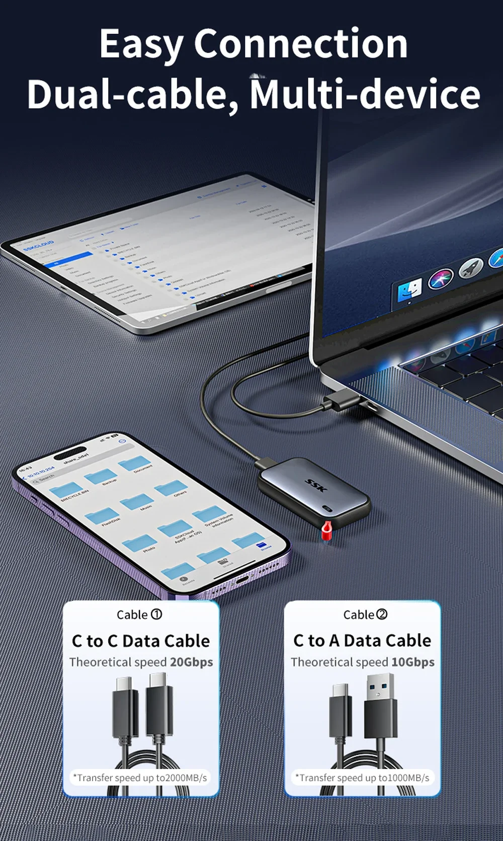 13.1. SSK External Solid State Drives Portable SSD 1TB 2TB Up To 2000MB/s Type-C External Hard Drive For Laptop Desktop Game Console