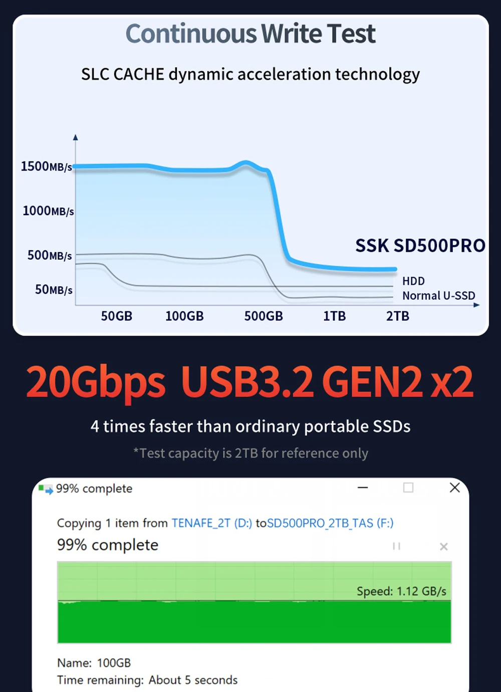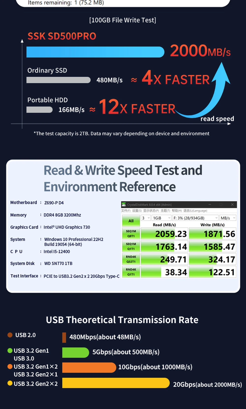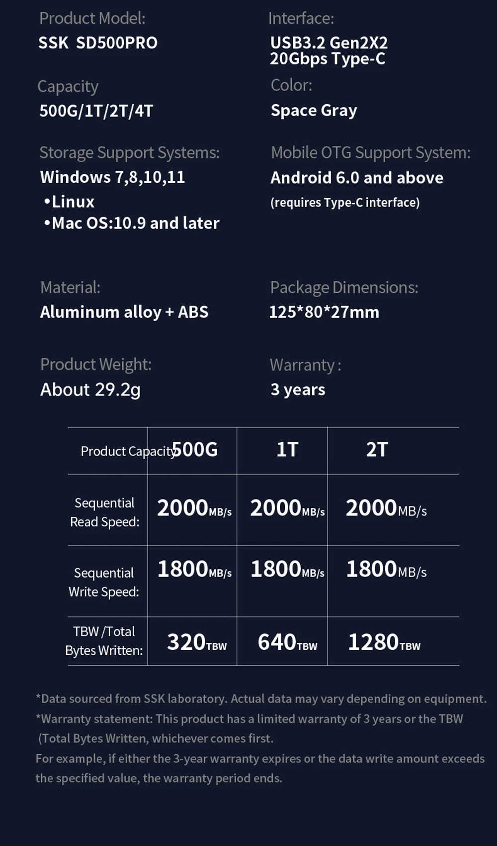 4. speed: CDM score: read: 2000MB / S (MAX) write: 1800MB / S (MAX) Product Capacity: 500GB/1TB/2TB/4TB