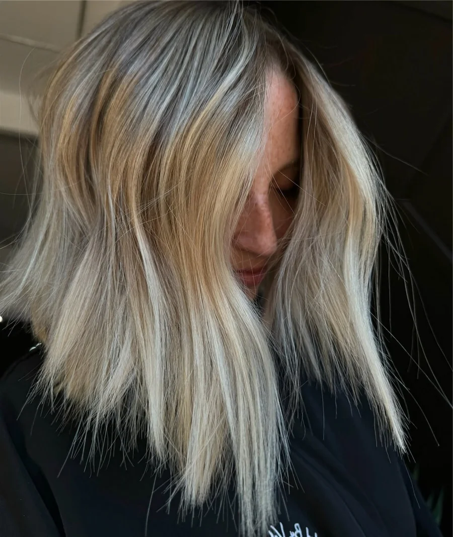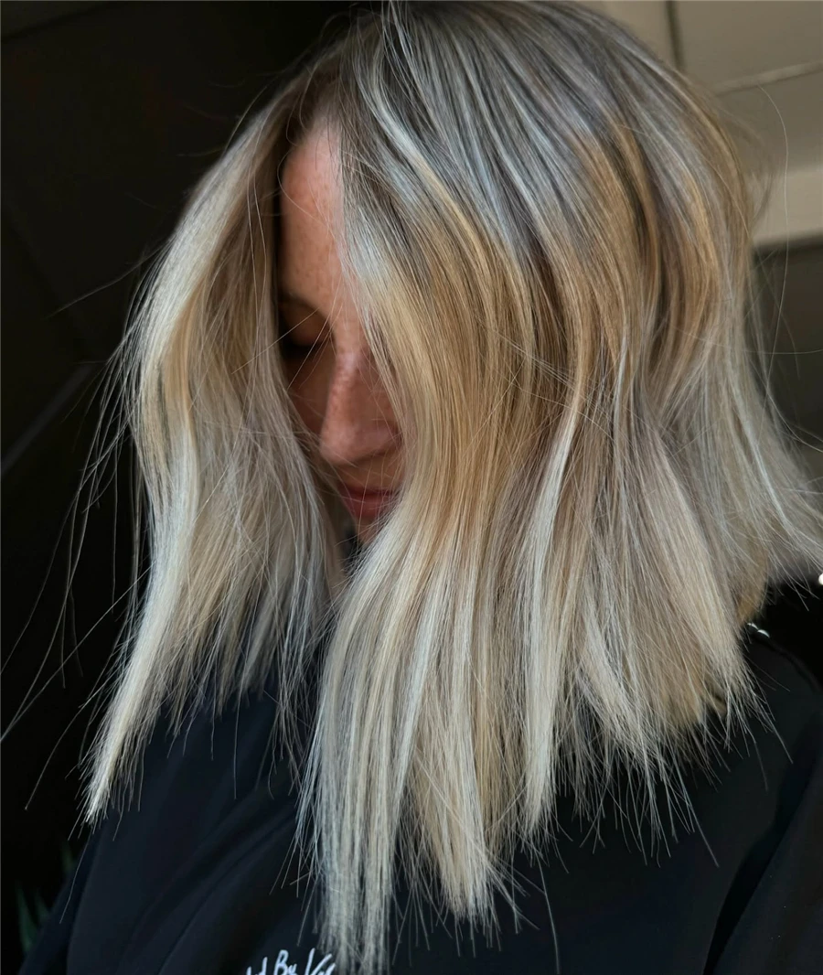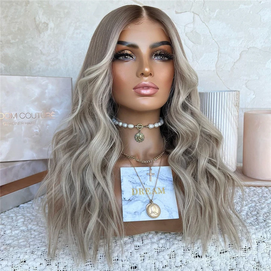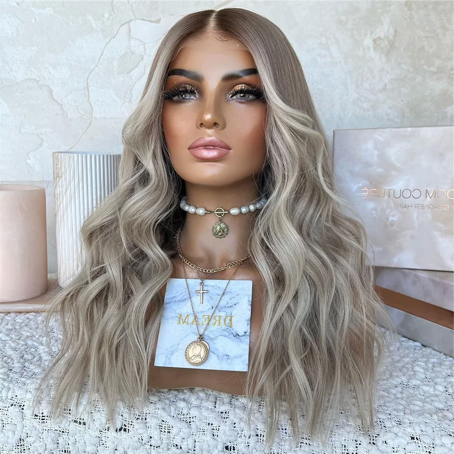 Long Straight 24inch Pre Plucked Heat Resistant WigAsh Blonde Synthetic Lace Front Wigs for Women Ombre Blonde With Brown Roots