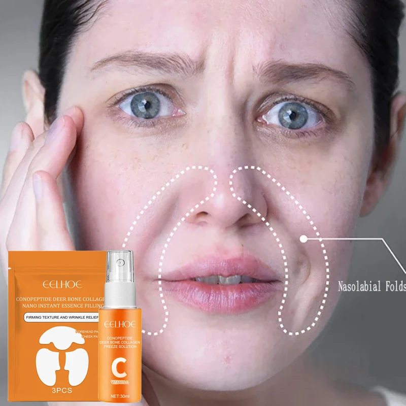 Vitamin C Facial Lifting Serum Set Collagen Anti-Wrinkle Spray Peptide Firming Forehead Patch Whiten Moisturizing Mask Sticker, Vitamin / supplement sprays