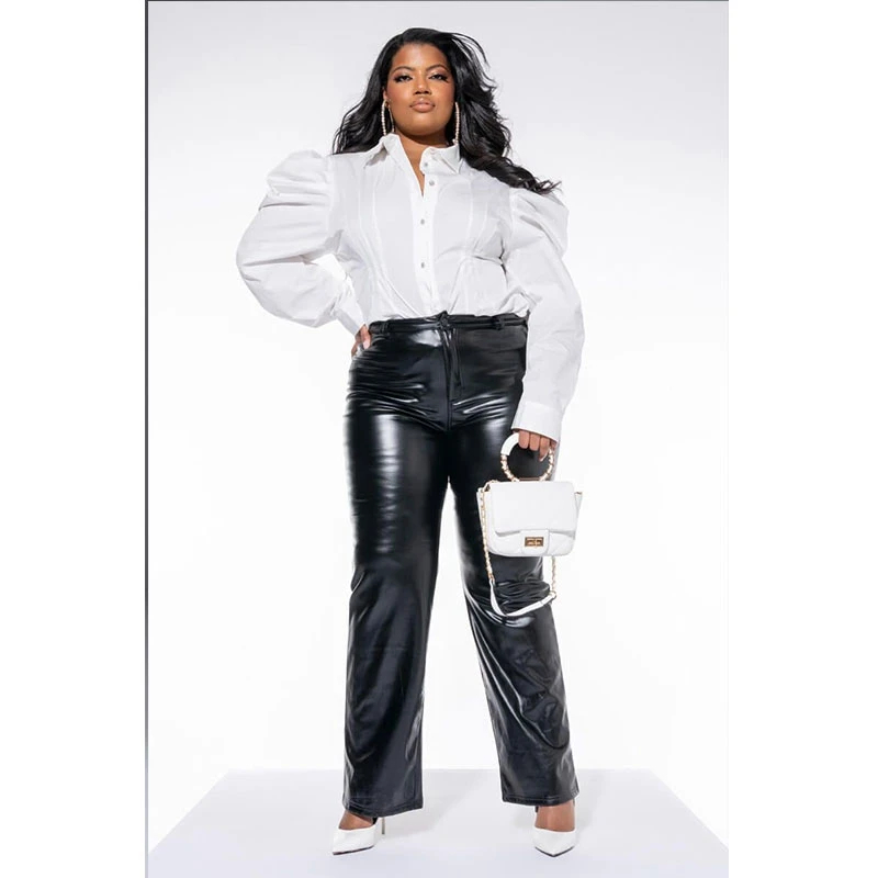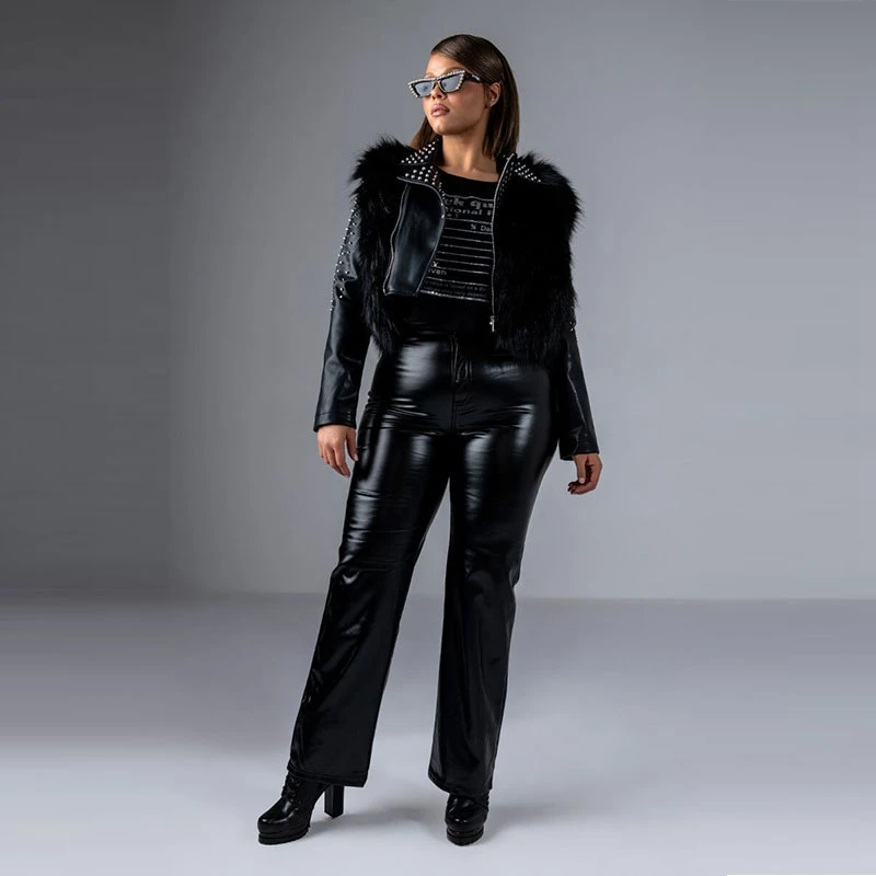 Women's Black Matte Leather Pants, High Waist PU Bodycon, Ankle-Length Pants, Casual Stretch, Plus Size, 5XL, 6XL, 7XL 2023